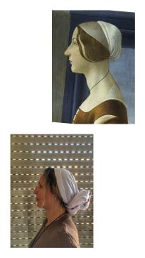 Giovanna e a filha Stephanie Greer, interpretando o Duca e a Duquesa de Urbino, obra de Piero della Francesca